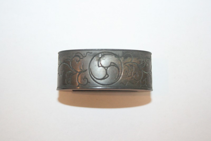 - 逸品!離れ縁! 本歌時代物縁金 銅地毛彫り三つ巴紋花図金色絵