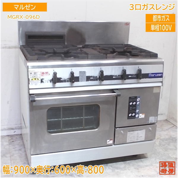 - マルゼン 都市ガス 3口ガスレンジ MGRX-096D オーブン付コンロ 900×600×800 中古厨房/25G3110Z