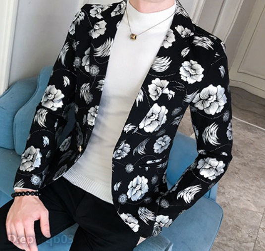 > テーラードジャケット※新品 ブレザー 折り襟 スリム 花柄 メンズ カジュアルスーツ 紳士 トップス おしゃれ サイズ選択可 黒/L