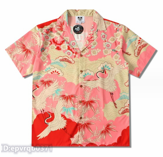 - 半袖シャツ 新品 メンズ トップス アロハシャツ ゆったり 薄手 折り襟 サーモ 紳士 夏着 鶴柄 祭り サイズ選択可 /Lサイズ