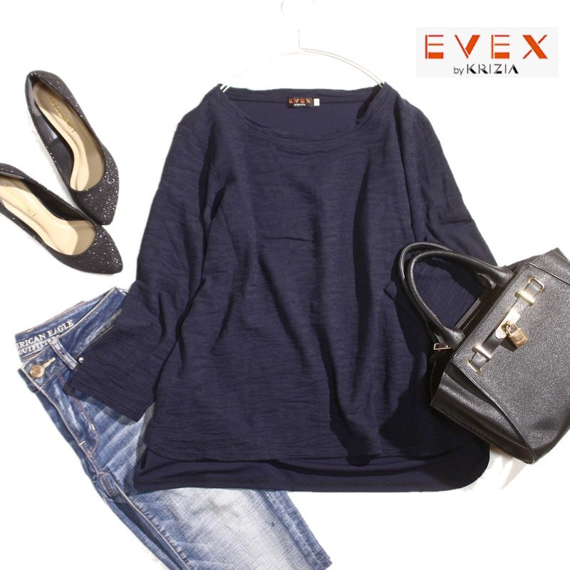 - 美品 エヴェックス バイ クリツィア EVEX by KRIZIA 凸凹 ジャガード ゼブラ 柄 ミセス ゆったり サマーニットカットソー 40 ネイビー 紺