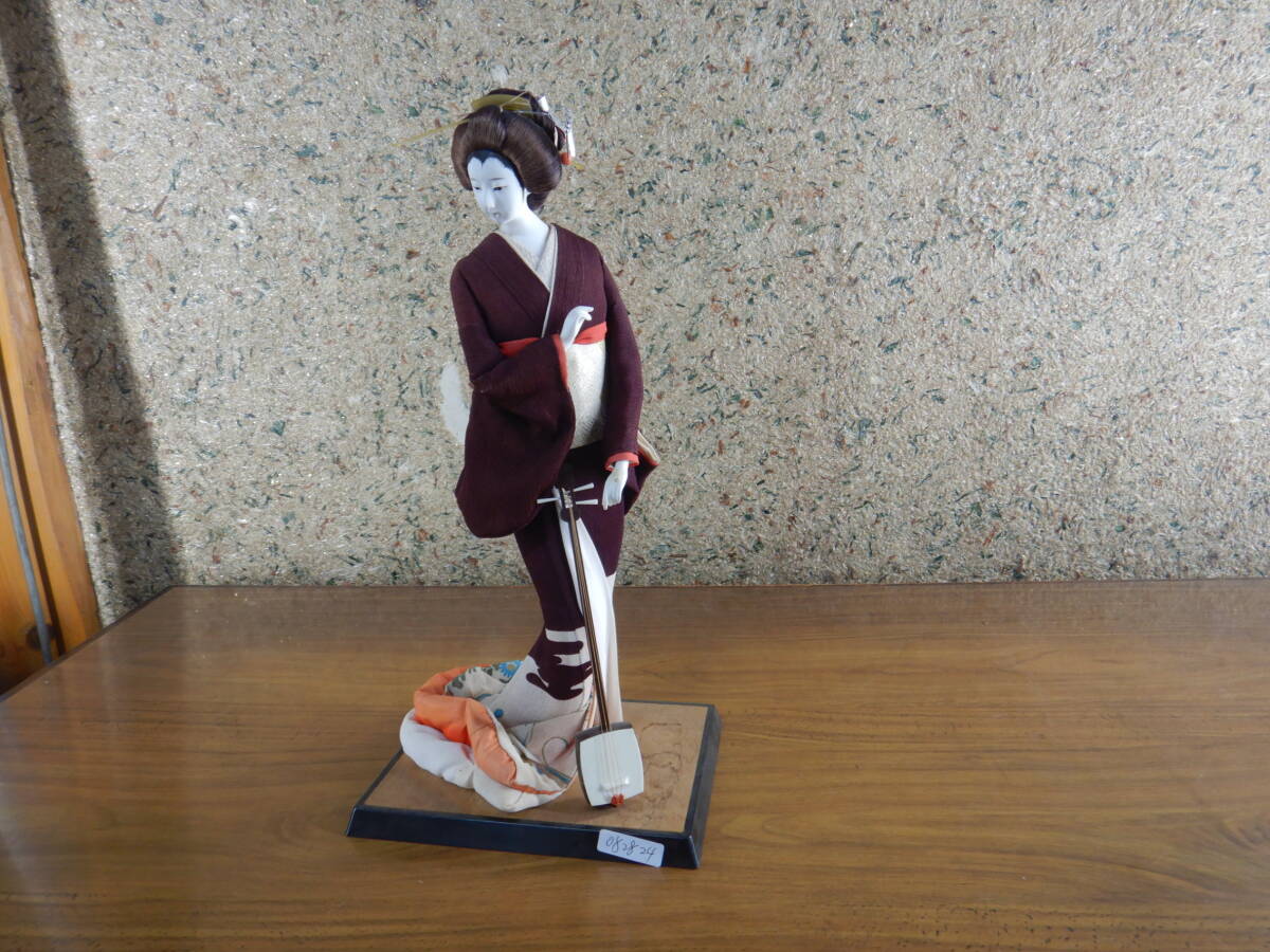 - 民芸 人形082824 日本人形 三味線 紫和服 21.516.5H45CM 観光土産品 DOLL 昭和レトロ 日本製