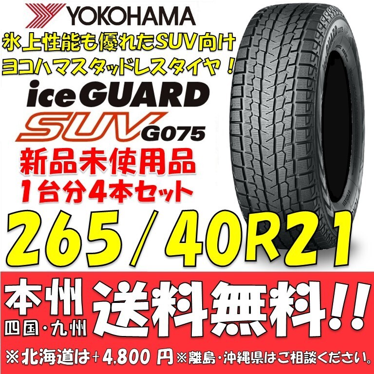 > 265/40R21 105Q XL ヨコハマタイヤ アイスガードSUV G075 新品4本セット 即決価格◎送料無料 日本国内正規品 スタッドレスタイヤ R8044