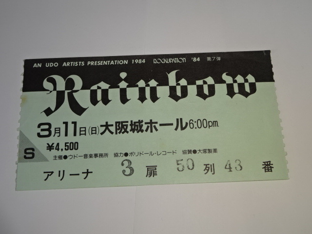 - 送料185円・小箱1■ Rainbow 1984年 大阪城ホール 半券 チケット レインボー