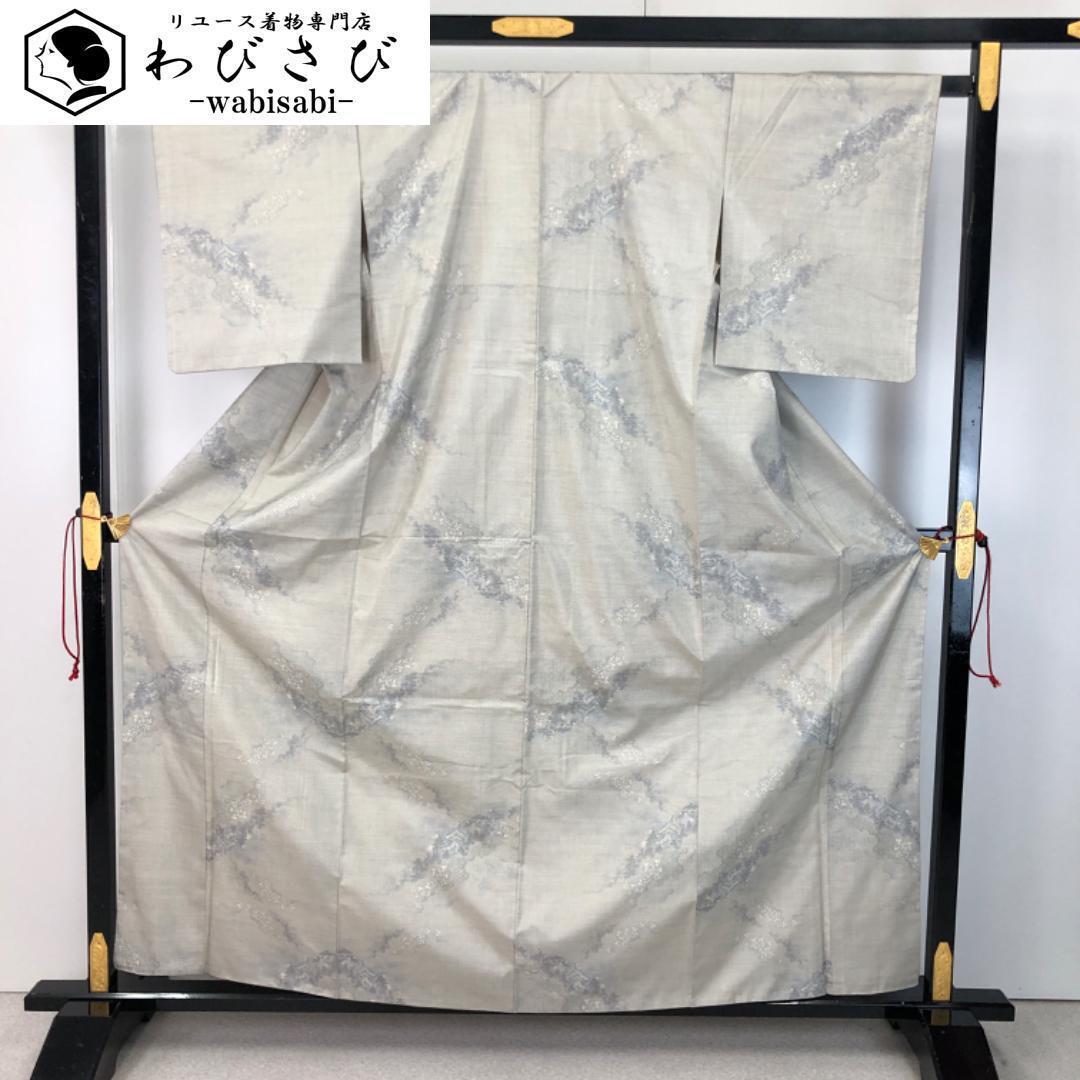 > 本場大島紬 白大島 カタス 9マルキ 寺院 風景 白鼠色 K-5209 着物 きもの kimono 和服 和装 中古 リサイクル着物 【送料無料】