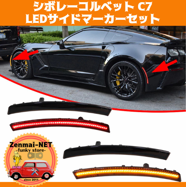 > Y122 シボレーコルベット C7 高照度LEDサイドマーカー・ウィンカー フロント/リアセット アンバーオレンジ&レッド発光 純正適合社外品