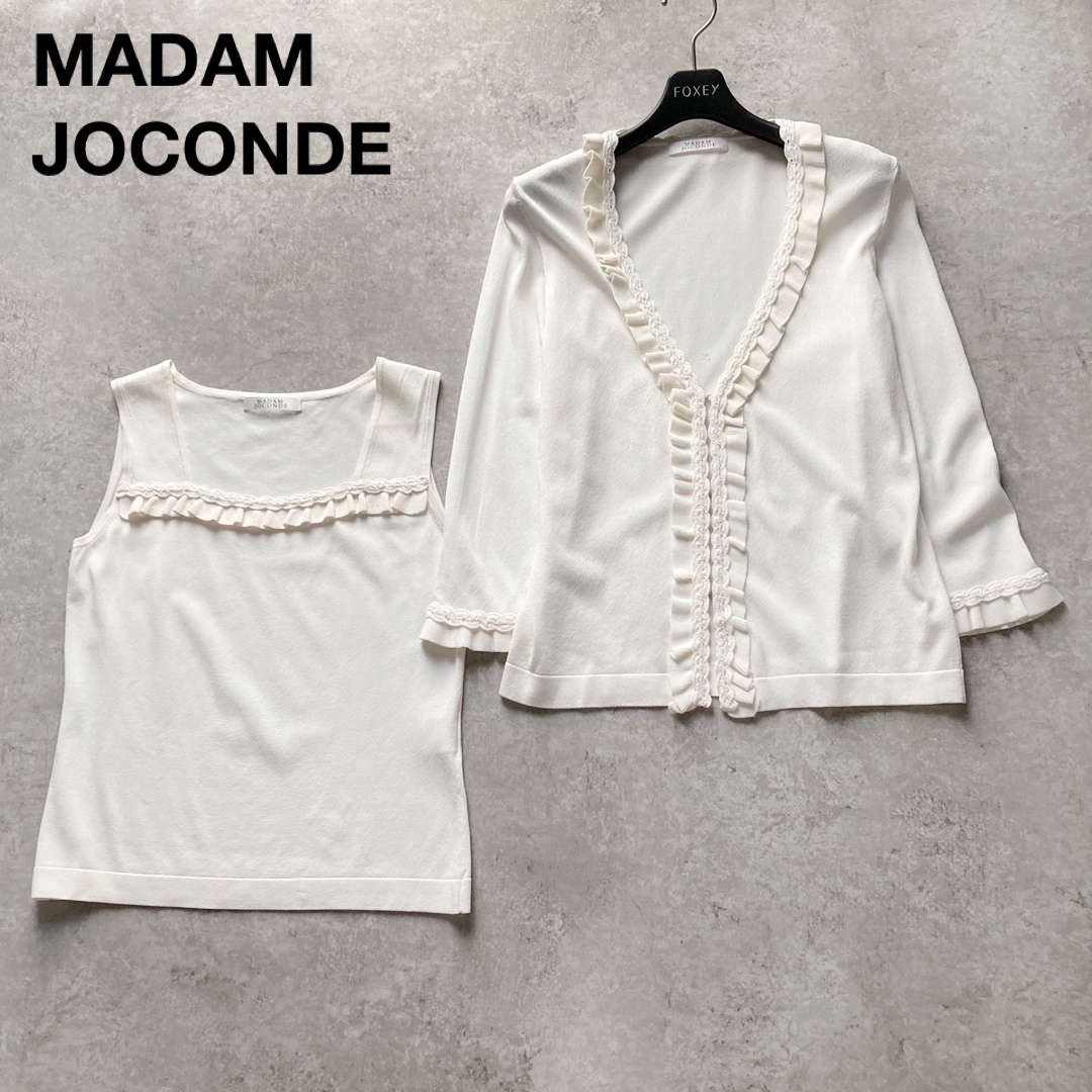 - 美品 ラピーヌ マダムジョコンダ アンサンブルニット ノースリーブ カーディガン セット フリル ビーズ 38サイズ ホワイト MADAM JOCONDE