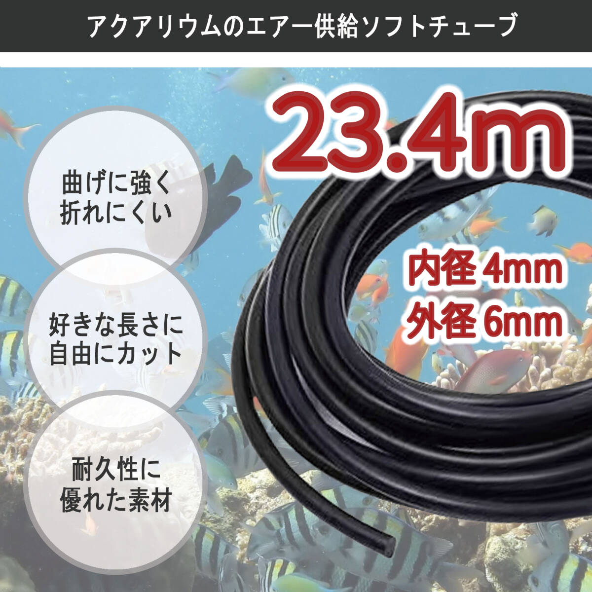 - ソフトチューブ 23.4m 黒 ブラック エアーチューブ エアホース シリコン エアチューブ エアレーション エアーポンプ アクアリウム 水槽