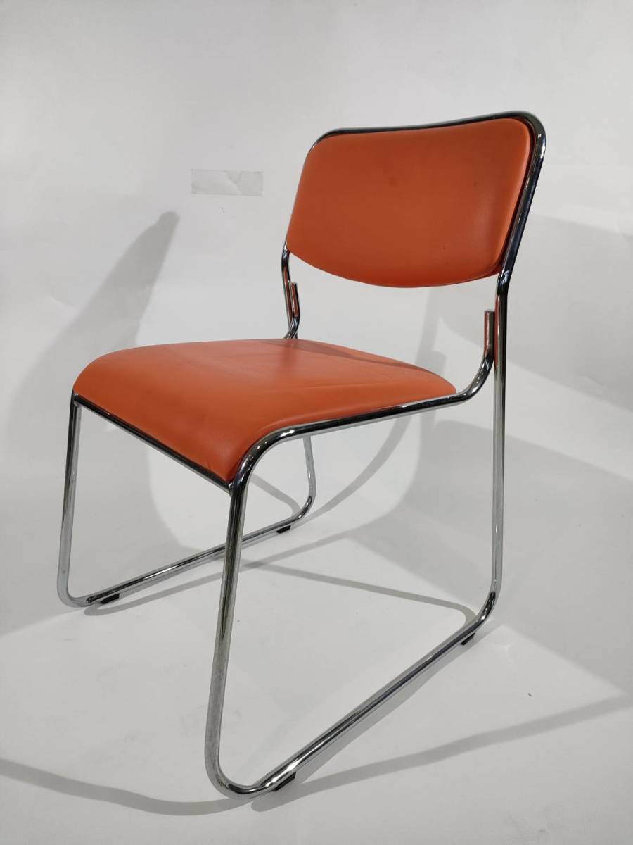 - 椅子2脚セット オレンジ色 幅 47cm 高さ 45cm (背もたれ込み 77cm) 奥行 55cm