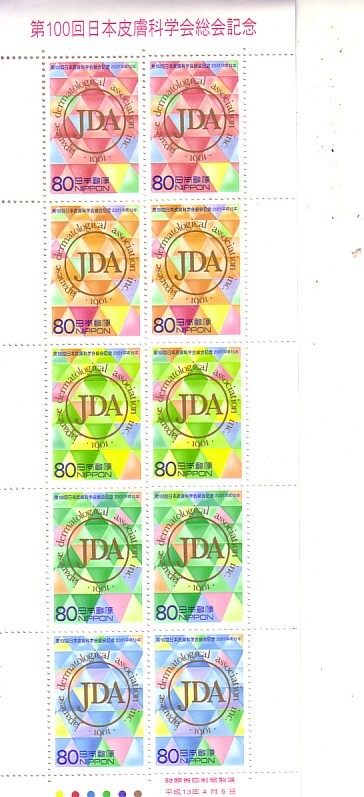 - 「第100回日本皮膚科学会総会記念」の記念切手です