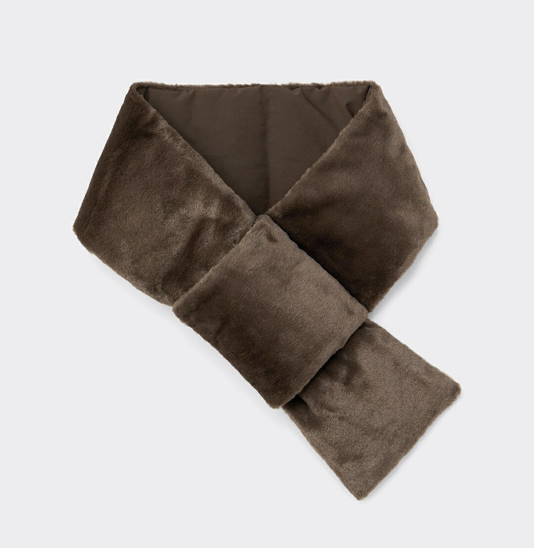 > 新品 ユニセックス ヒートパデッド リバーシブルマフラー ダークブラウン 茶 GU 送料無料 男女兼用 保温機能付 フェイクファー