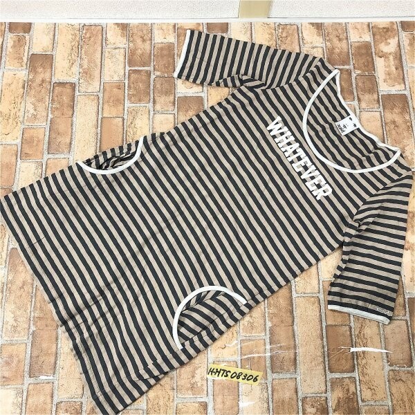 - X-girl エックスガール レディース ロゴ刺繍 五分袖 ボーダー ミニワンピース 1 茶黒