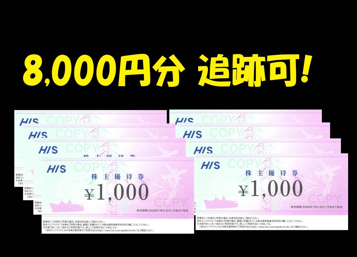 - ◆ HIS エイチアイエス 株主 優待 券 8000円分 ( 割引券 旅行 航空券 HIS 国内 海外 旅行 H.I.S HIS ハワイ 旅行 観光