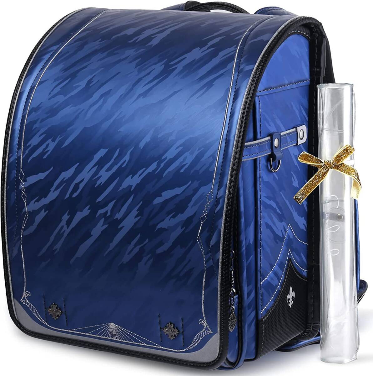 > 【新品未使用】ランドセル 青 黒 大容量 軽量 迷彩 ブルー×ブラック A4 自動ロック おしゃれ 男の子 男子 クロス ラン活 入学