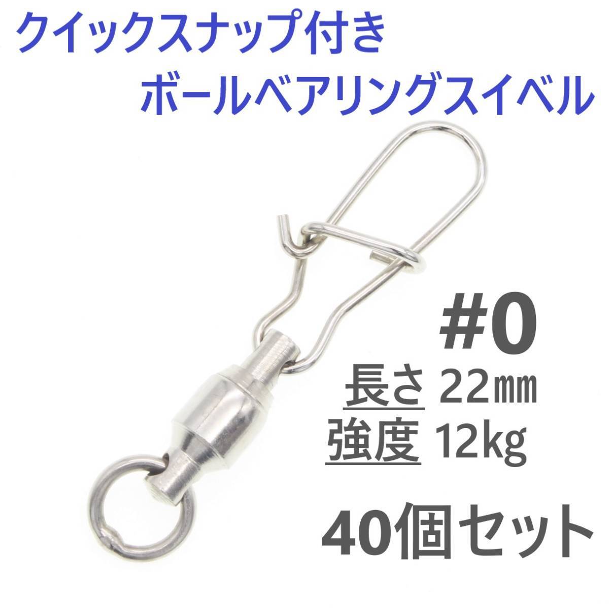 > 【送料150円】クイックスナップ付き ボールベアリング スイベル #0 40個セット 溶接リング付き ローリング サルカン ジギング等に!