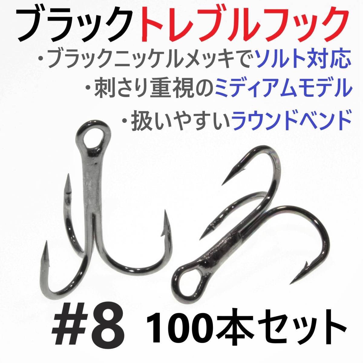 - 【送料150円】ブラックトレブルフック #8 100本セット トリプル ルアーフック ソルト対応 釣り針