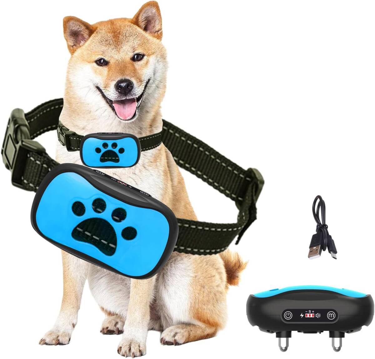 - 無駄吠え防止首輪 超音波モード 防止グッズ 53g超軽量 電流ショック不使用 超音波 静電モード充電式 7段階センサー機能 自動振動