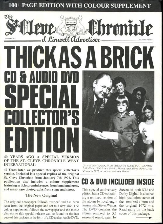 - 2012年 40周年記念盤!CD+DVD Jethro Tull / Thick As A Brick 1972年作【Chrysalis / 5099970461923】ジェスロ・タル 高音質 ミックス