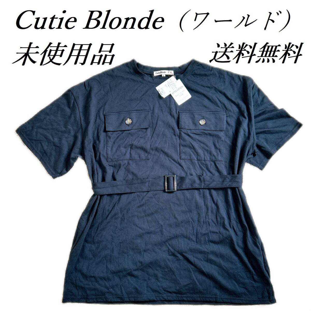 - ワールド 未使用 world Cutie Blonde キューティーブロンド ウエストベルト付 シャツワンピース ゆったり Lサイズ 新品タグ付き