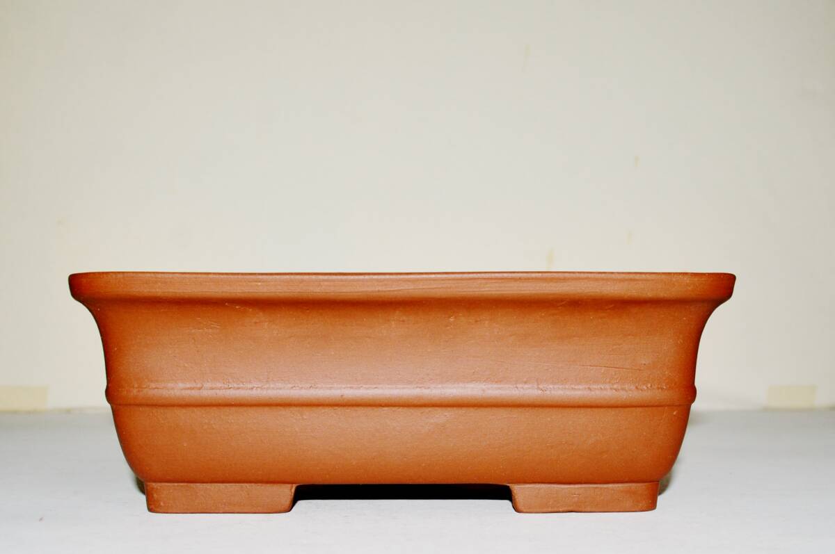 - 注文製作品・大き目な・中国古盆器写し 「銭号」 朱泥 胴帯外縁長方形の鉢