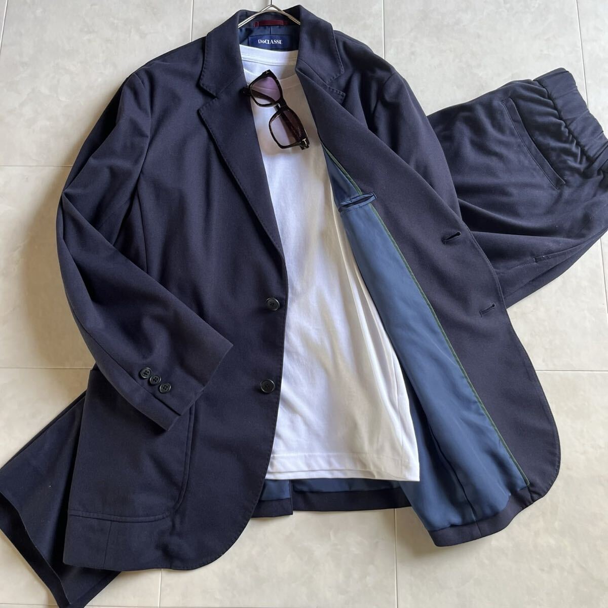 - 美品 【XL&XXLサイズ】DoCLASSE ドゥクラッセ セットアップ 紺 テーラードジャケット スラックス 上品 通勤 ウエストゴム 大きいサイズ