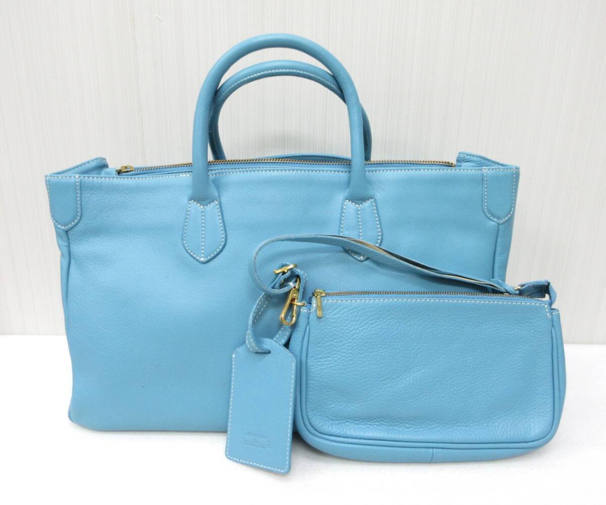 - 14/ A.D.M.J. Accesoires De Mademoiselle アクセソワドゥマドモワゼル 本革 レザー ハンド トートバッグ ポーチ付き ライトブルー a