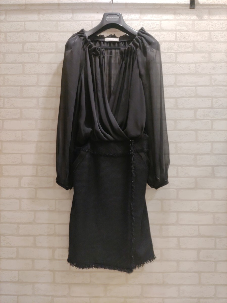 - 【美品・スピード配送】ADORE アドーア シルク ブラック シフォンワンピース サイズ38 ラメツィード 長袖