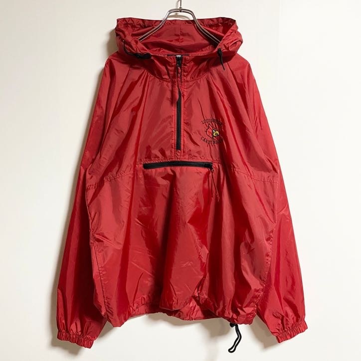 - 古着 used 長袖ハーフジップナイロンジャケット アノラックパーカー ワンポイント刺繍 カージナルズ 赤 レッド XLサイズ