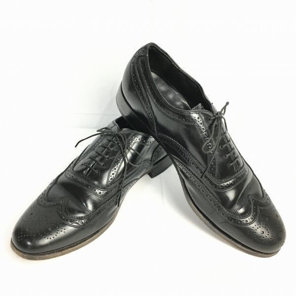 > 85年製?Vintage フローシャイム/FRORSHEIM フルブローグ ウイングチップ〈黒〉size8.5D 26.0-26.5/メンズ 菅NO.WZD-121