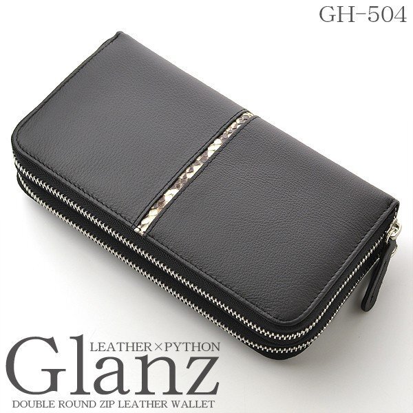 - 【Glanz】牛革×蛇革ダブルファスナー長財布■GH-504■大容量Wラウンドファスナー財布