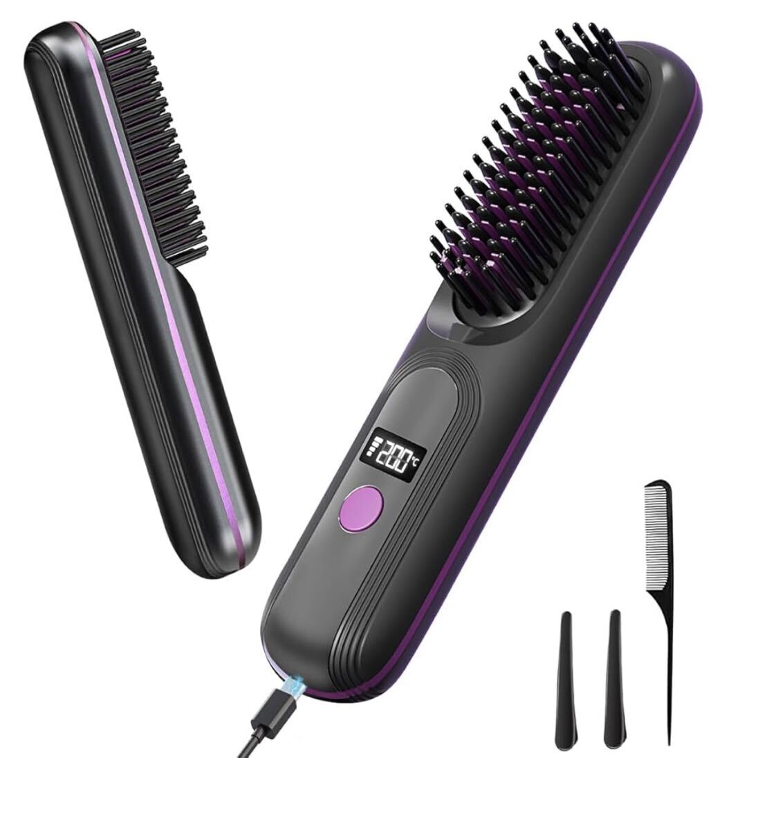 - ヒートブラシ コードレス ブラシ型ヘアアイロン ストレートヘアアイロンブラシ マイナスイオン 4000mAh大容量 Type-C充電式