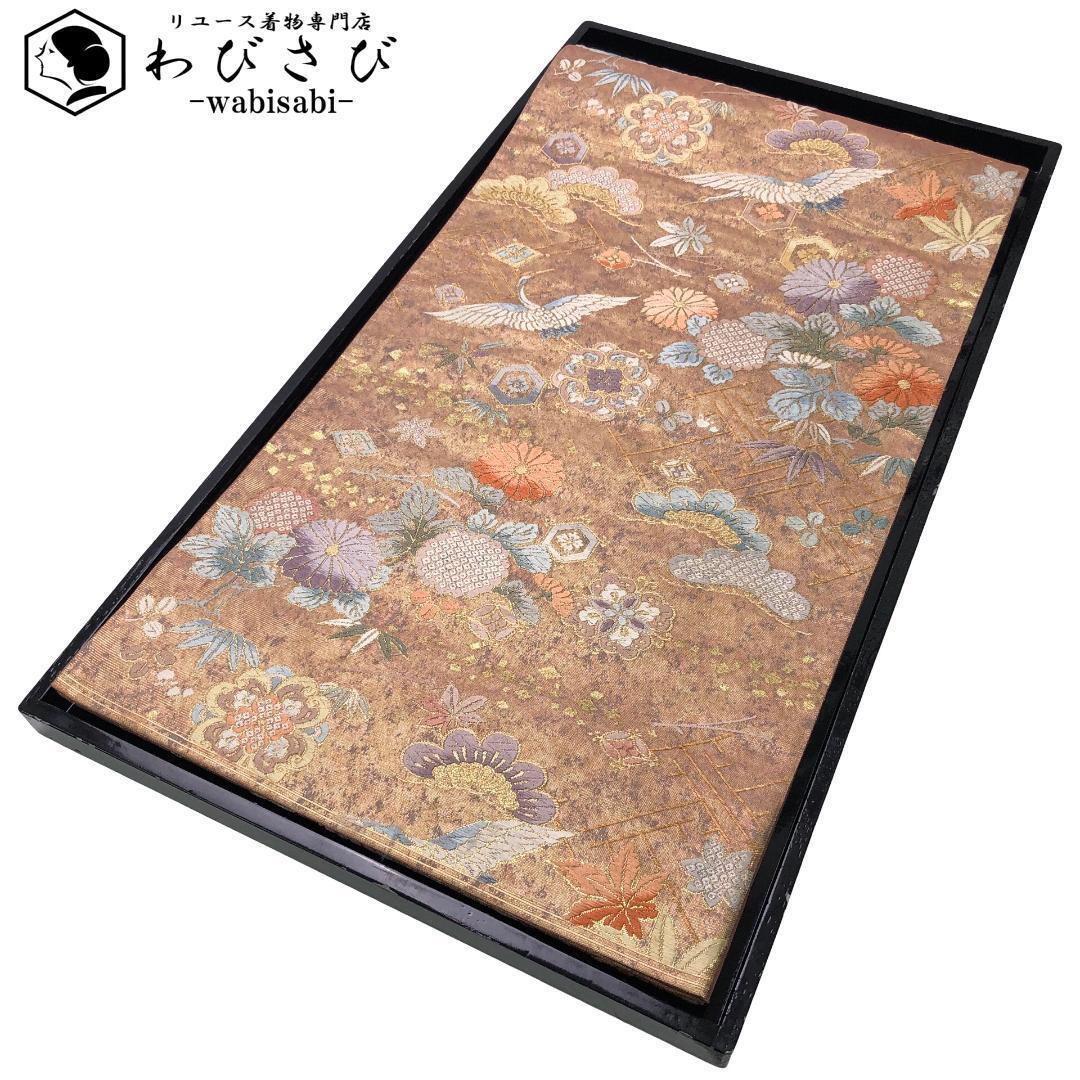 > 袋帯 鶴 松に花模様 嵯峨鼠色 金糸 O-5434 着物 きもの kimono 和服 和装 中古 リサイクル着物 【送料無料】