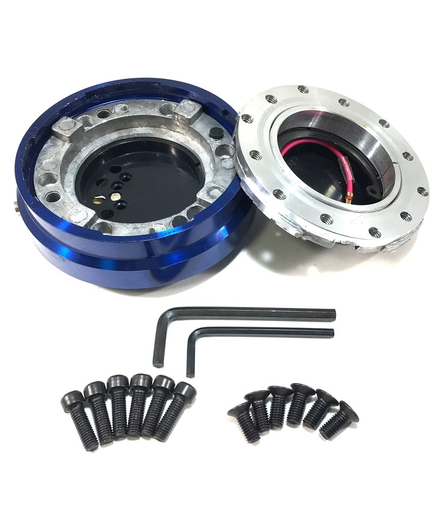 - クイック リリース ステアリング ボス 薄型 ブルー 青 スリムタイプ 25mm 脱着式 ハンドル 盗難 防止 汎用品