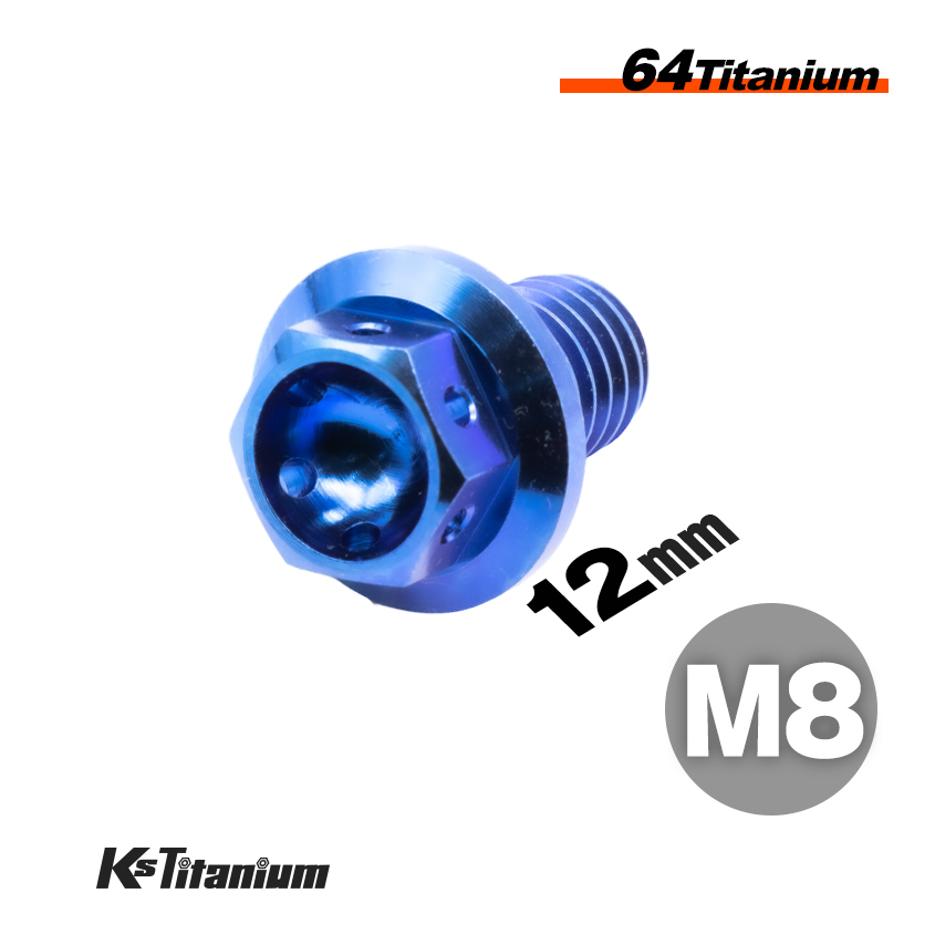- チタンボルト M8×12 P1.25 ブルー 64チタン オイルドレンボルト ワイヤーロック ワイヤリング フランジ レース サーキット 競技用に