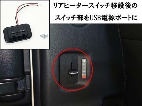 - YO-399 【200系 ハイエース リアヒータースイッチ部 USB 電源ポート TypeA / TypeC】 カスタム 1型~7型 充電 DC12-24V 車中泊に