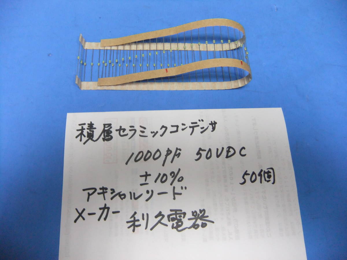 - 利久電器製 超小型アキシャルリード積層セラミックコンデンサ 50V 1000PF 50個 新品在庫品 Y