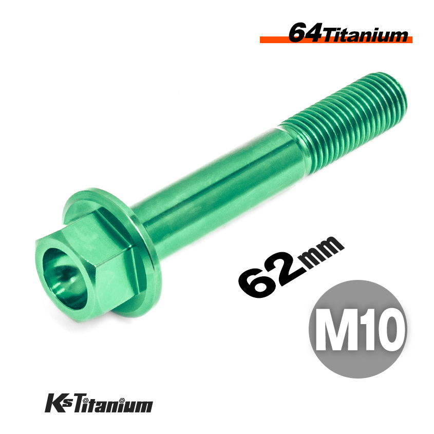 > チタンボルト M10×62 P1.25 グリーン 1本売り 64チタン フランジボルト スレッド 25mm バイク レストア パーツ