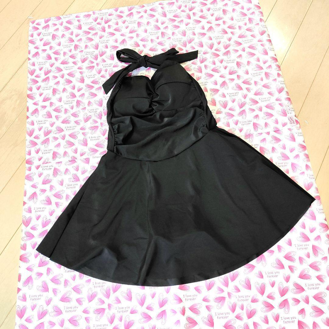 - ワンピース水着 Mサイズ 黒 ホルターネック みぞおち魅せ インナーパンツ内蔵