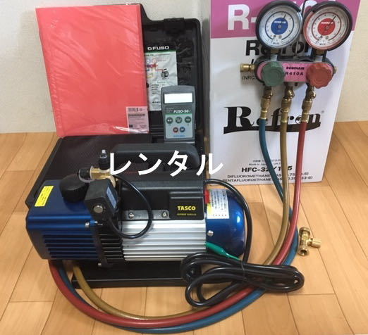 - エアコンガスチャージセット3日間【レンタル】R410(真空ポンプ・チャージングスケール・ゲージマニーホールドフロンガス1000gまで)