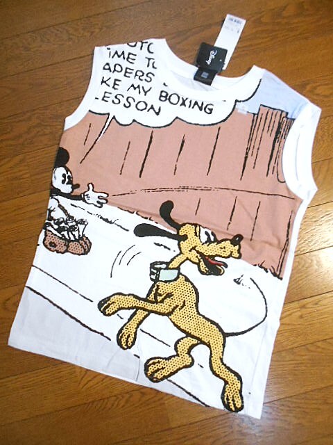 - GUxディズニー☆レディース M☆キュートなミッキー&プルートビッグプリントノースリーブTシャツ/タンクトップ 未使用品