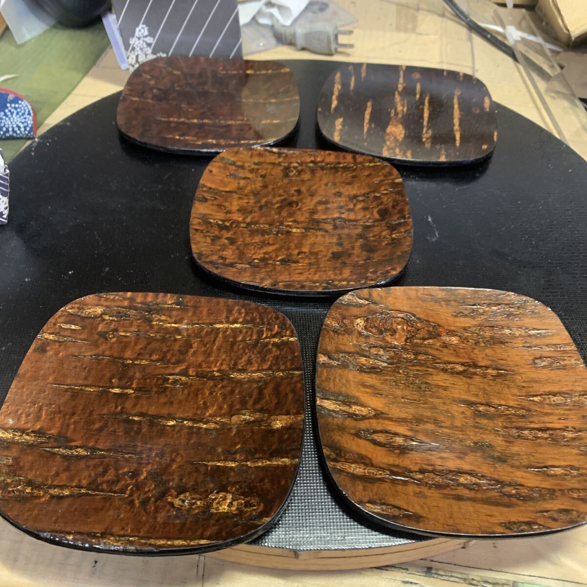 - 銘々皿 菓子皿 天然木 桜皮細工 長期保管品