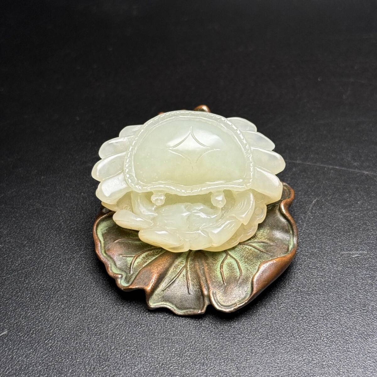 - 蔵友旧蔵出 和田玉製 細密彫 家財萬貫 八方來財 蟹 玉質細膩 希少珍品 貴重品 置物 古賞物 中国古玩 中国古美術品
