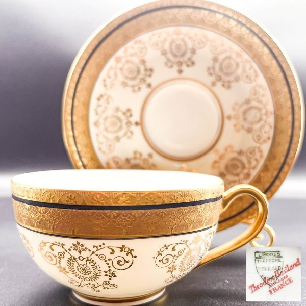- 【アビランド】リモージュ 金彩豪華装飾 カップ&ソーサー Theodore Haviland Limoges フランス製 ヴィンテージ 高級磁器 [SN090701]