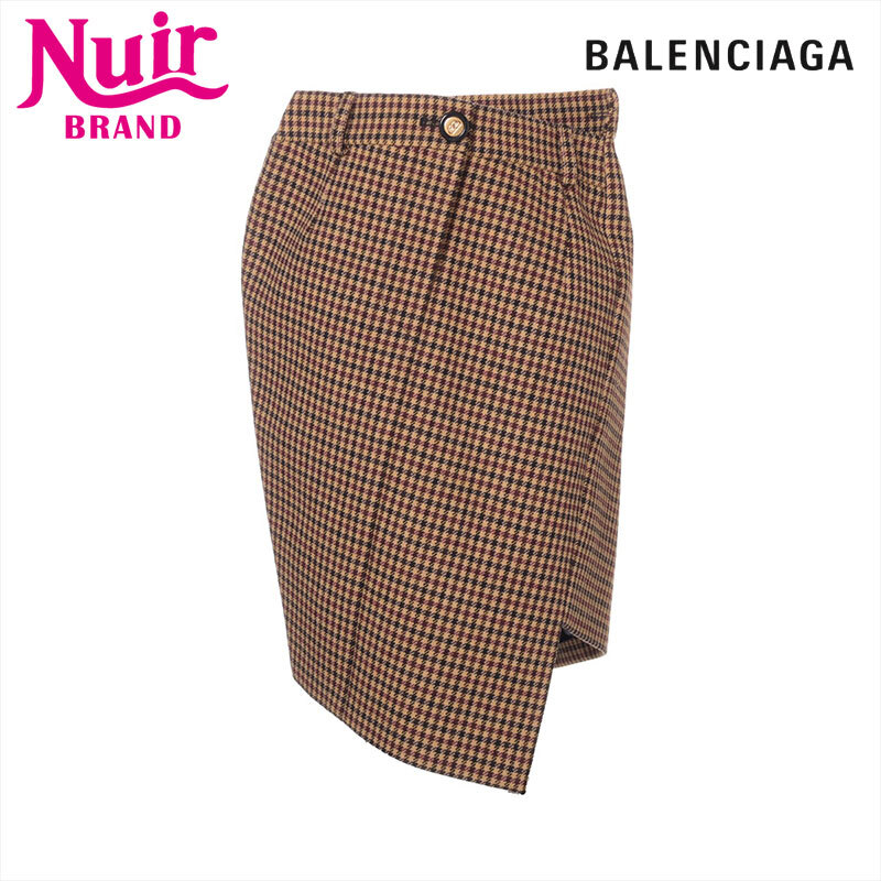 > バレンシアガ BALENCIAGA スカート Size:34 チェック タイト 変形 シンメトリー ロゴボタン ウール 19年 ベージュ