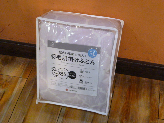 > ■未使用品 西川 SEVENDAYS 幅広い季節で使える羽毛肌掛けふとん SLシングルロング ラベンダー/ダウン85%/羽毛掛け布団/ダウンケット■