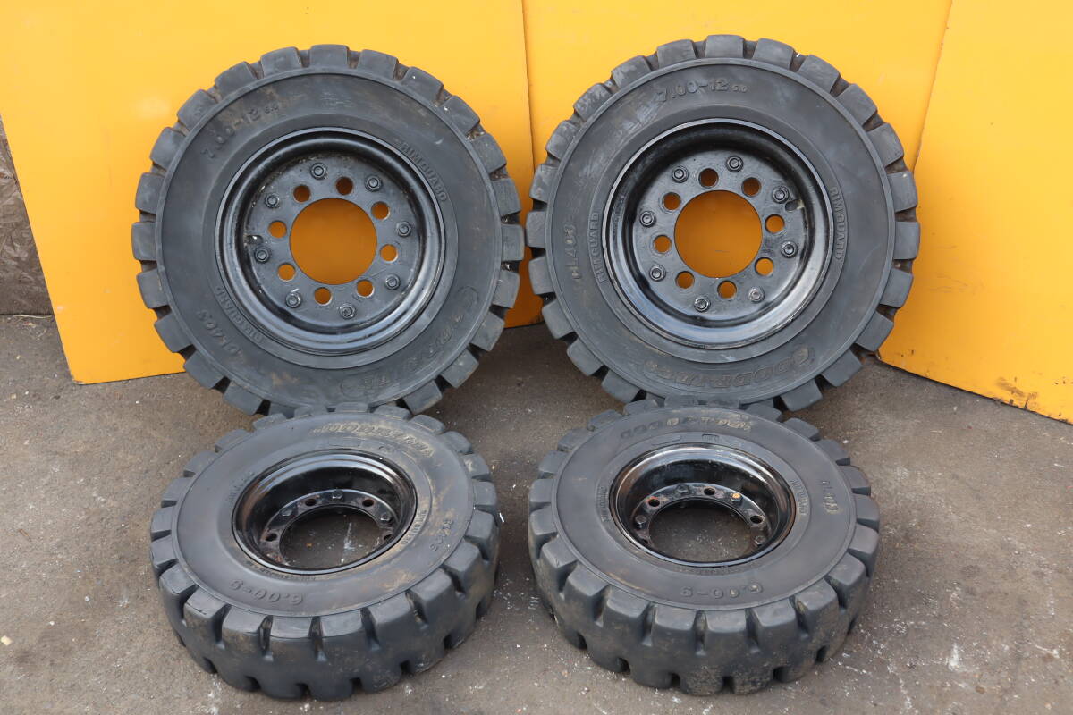 - フォークリフトタイヤ GOODRIDE 7.00-12 5.0 2本,6.00-9 4.00 2本 ノーパンクタイヤ 4本セット 即決価格