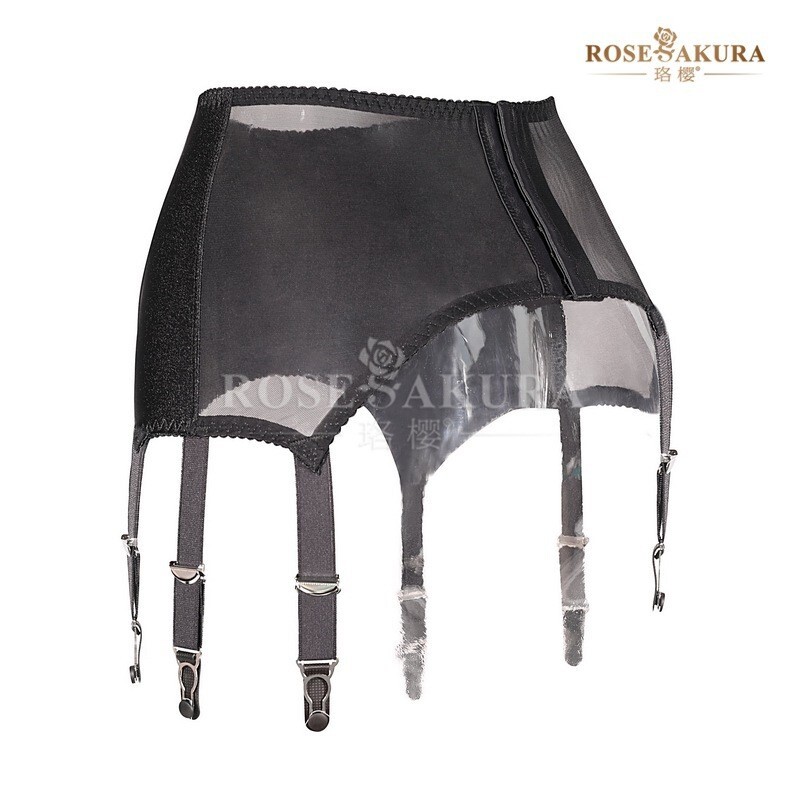 - 送料無料 新作 ROSESAKURA・8384 BLACK クラシック/レトロデザイン6バックル・ウエストバックル付きガーターベルト