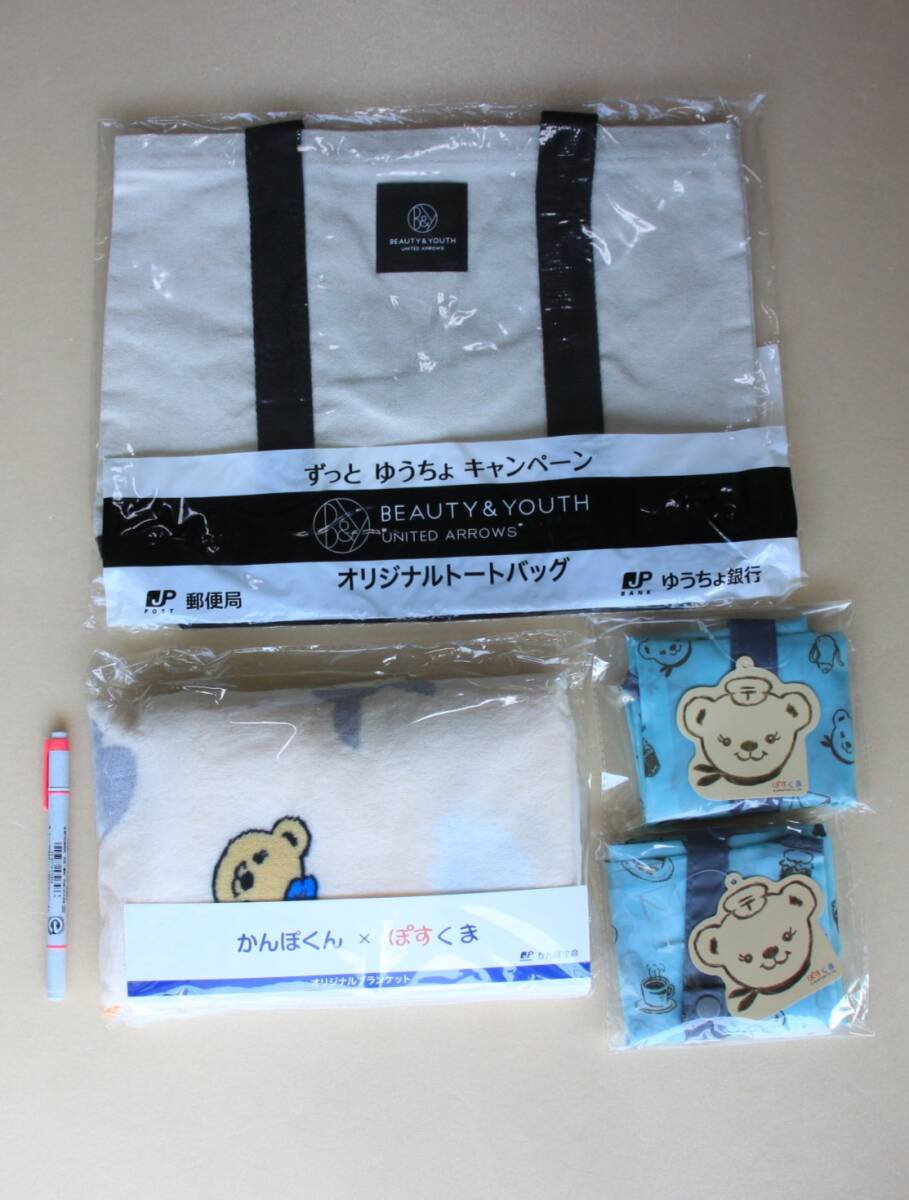 - 37★「トートバッグ《BEAUTY&YOUTH》」「エコバッグ」「オリジナルブランケット」★《ゆうちょ》《かんぽくん×ぽすくま》