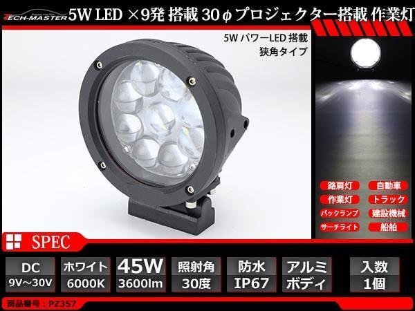 - 45W LED作業灯 狭角30度 スポットライト 高輝度LED 防水 屋外 車/トラック/船舶 ワークライト マリンデッキライト 汎用 DC12V/24V PZ357