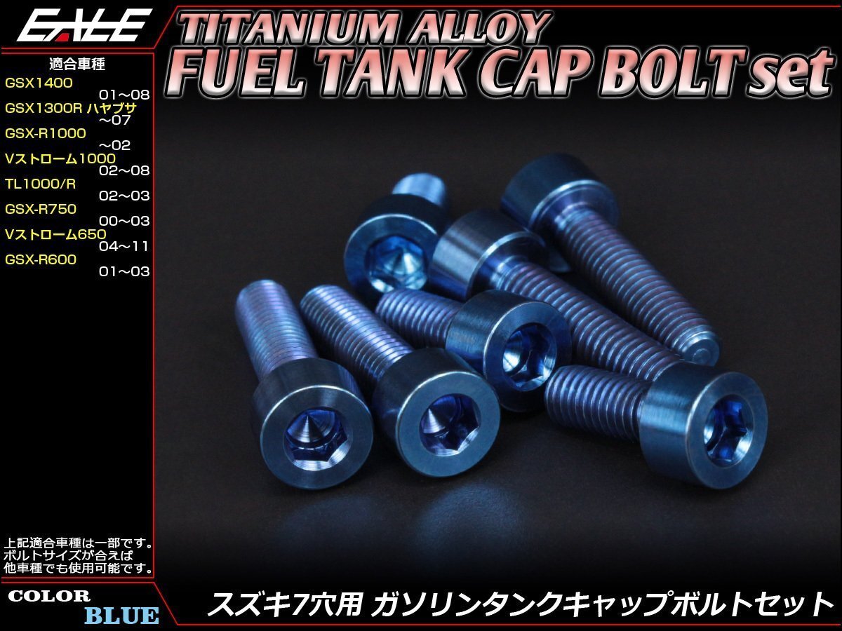 - 64チタン合金(TC4/GR5)採用 スズキ7穴 ガソリン(フューエル) タンク キャップボルト セット 7本組 GSX1300Rハヤブサなどに ブルー JA248